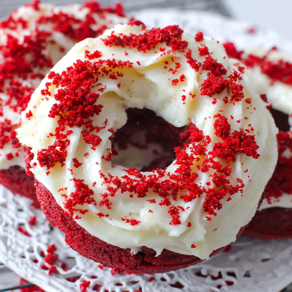 Baked Red Velvet Donuts with Cream Cheese Frosting